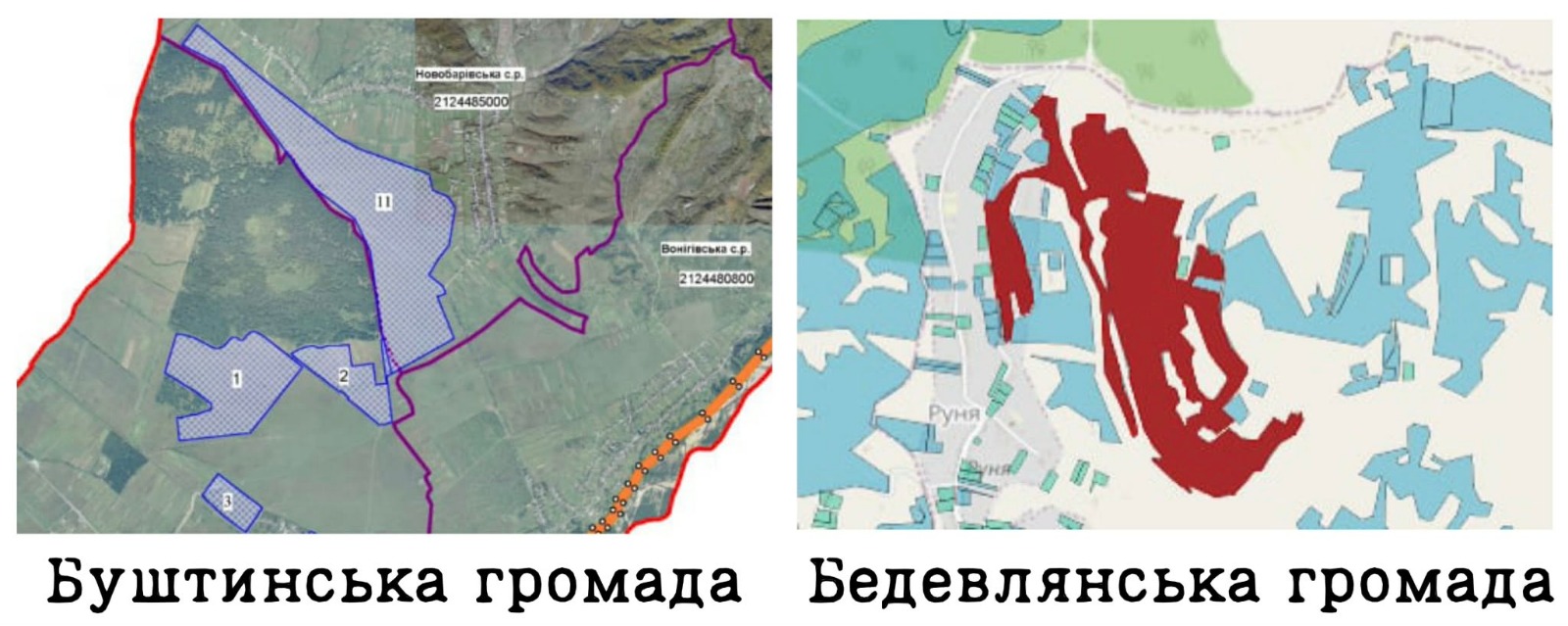 Місце під СЕС у Буштинській (позначки 1, 2 та 11) та Бедевлянській громадах