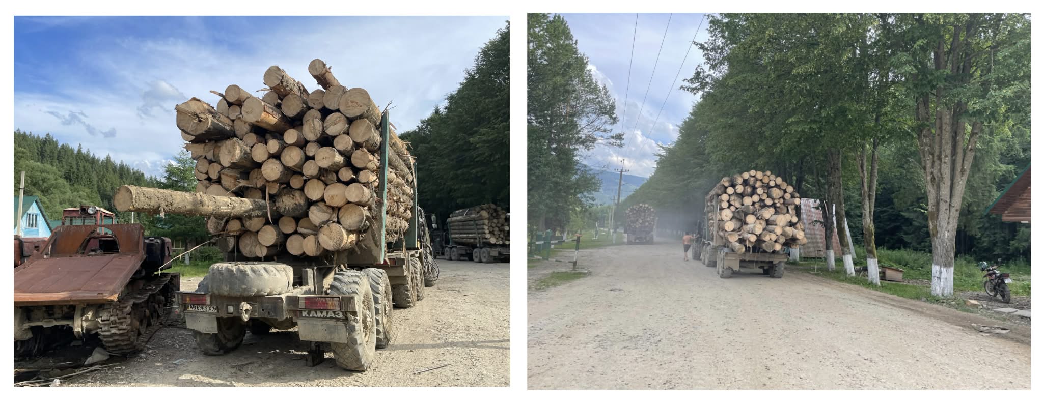 Фото вантажівок з немаркованою деревиною у Плайському надлісництві, липень 2025 року