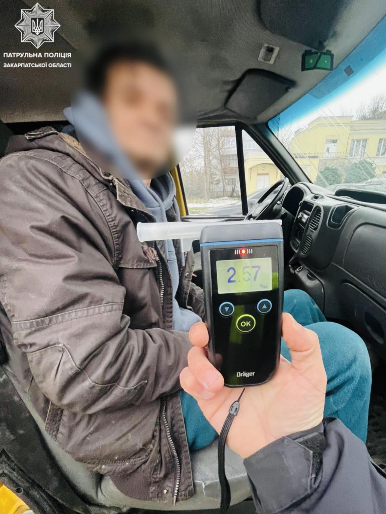 Результат тесту підтвердив сп’яніння — 2,57 проміле алкоголю в крові.