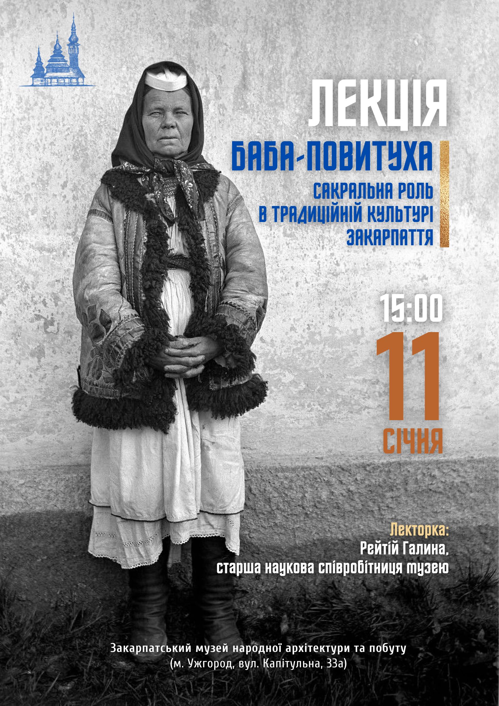 Баба-повитуха – одна з ключових постатей традиційного суспільства. Вона супроводжувала народження людини, поєднуючи практичні знання з віруваннями, обрядами та магічними уявленнями. Під час лекції, яку проведе старша наукова співробітниця музею Галина Рейтій, можна буде дізнатися про статус баби-повитухи, її функції та символічне значення в культурі Закарпаття.