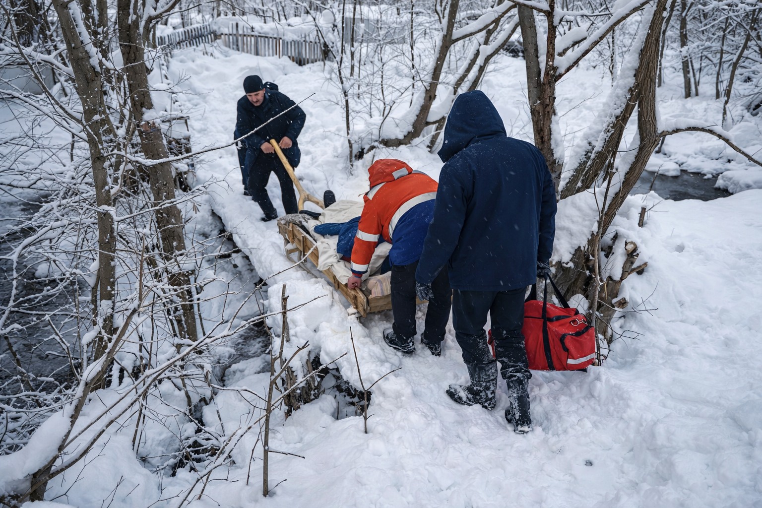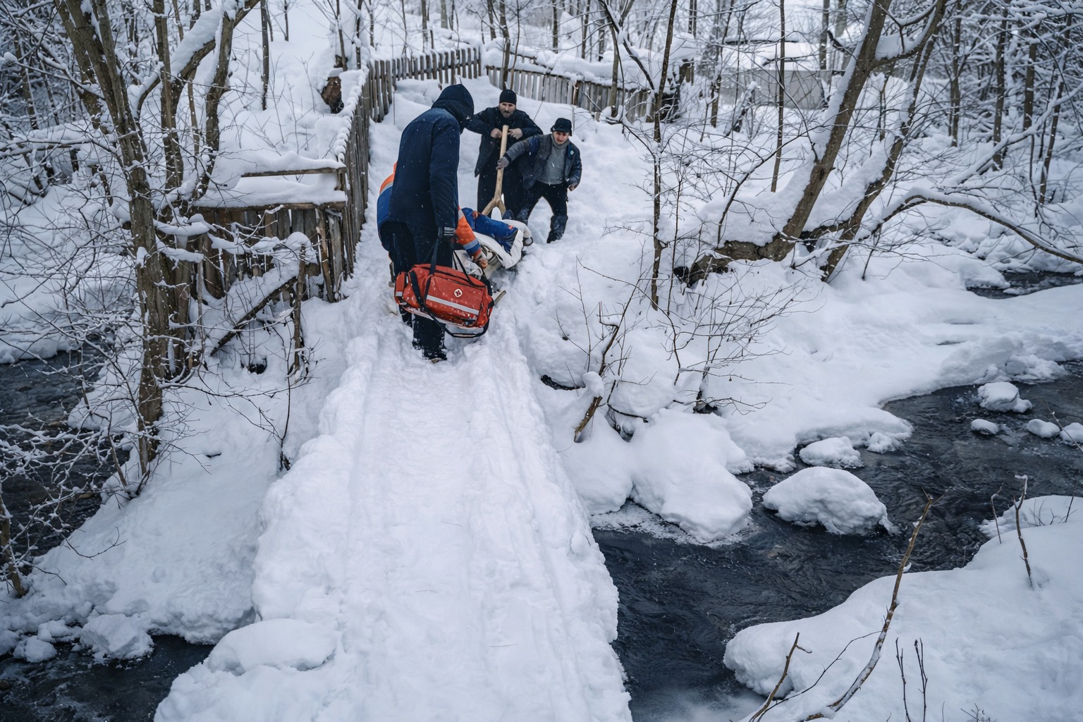 Медики стабілізували стан хворого, після чого разом із сусідами та родичами транспортували його санчатами до автомобіля швидкої допомоги. Під час перевезення пацієнту забезпечили кисневу підтримку, інфузійну терапію та постійний моніторинг життєвих показників.