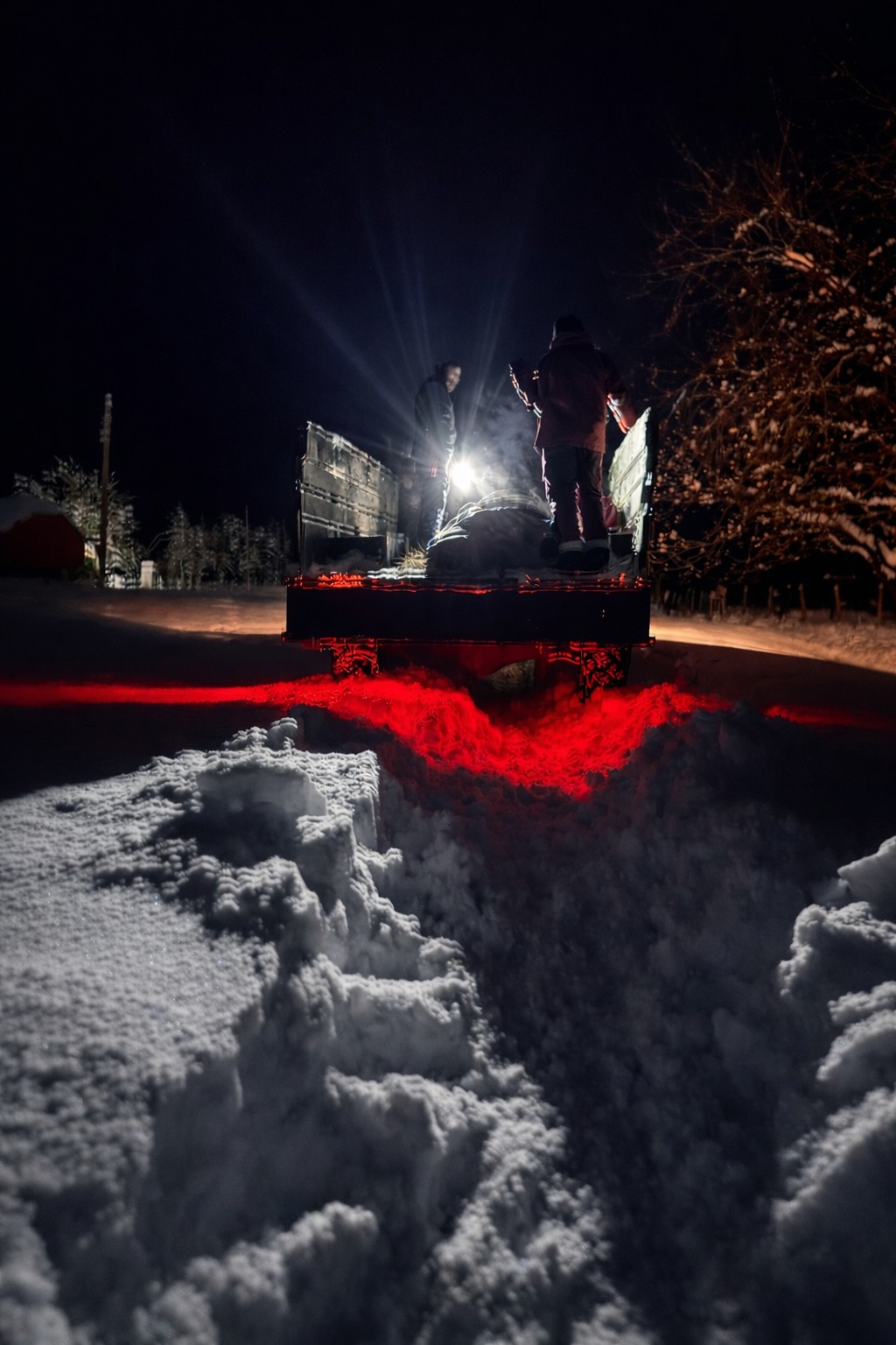 Для подальшого руху було залучено вантажний автомобіль підвищеної прохідності, яким бригаду медиків разом з необхідним обладнанням доставили вглиб населеного пункту. Ще через кілька кілометрів рух техніки став неможливим, тож останню ділянку — близько 300 метрів — довелося долати пішки спуском у яр, де розташований будинок.