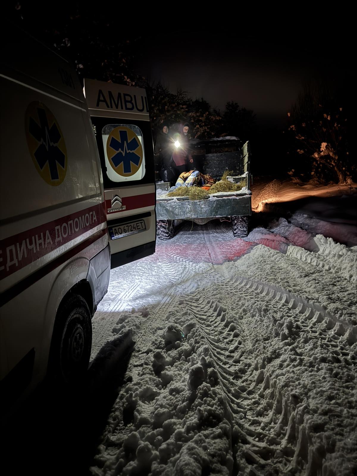 У ніч на виклик о 03:30 медики отримали повідомлення з села Сухий Ставненської громади. Допомоги потребував 79-річний чоловік з опіками рук та передньої частини тулуба, який майже не міг самостійно пересуватися. Через сильну хуртовину та повністю заметену дорогу автомобіль швидкої допомоги не зміг дістатися до будинку пацієнта.