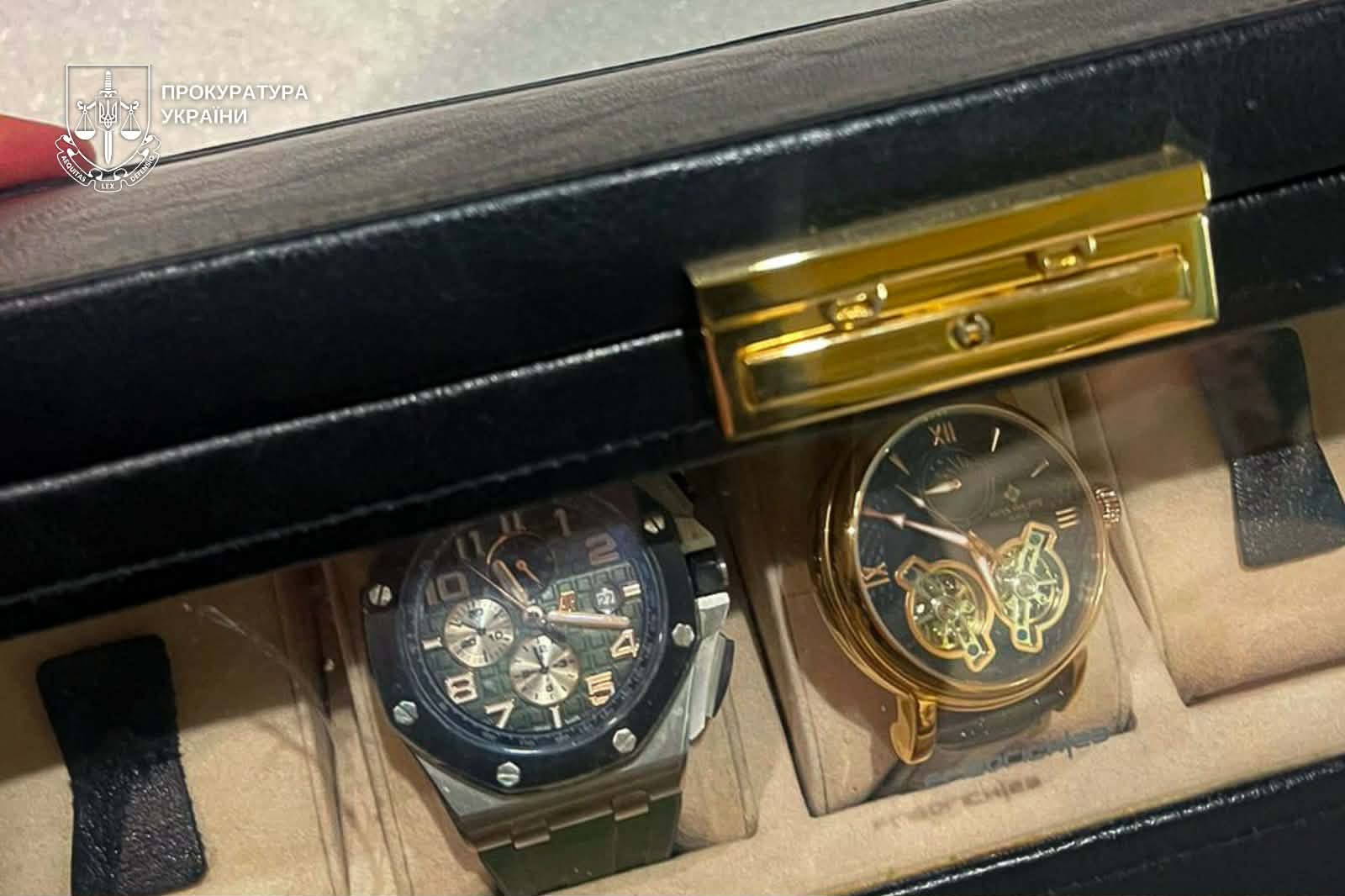 Під час санкціонованих обшуків правоохоронці вилучили два годинники відомих світових брендів, дев’ять картин відомих художників, автомобілі Mercedes-Benz S-Class та Mercedes-Benz GLE 2021 року, мобільні телефони, документацію щодо оренди приміщень і готівкові кошти.