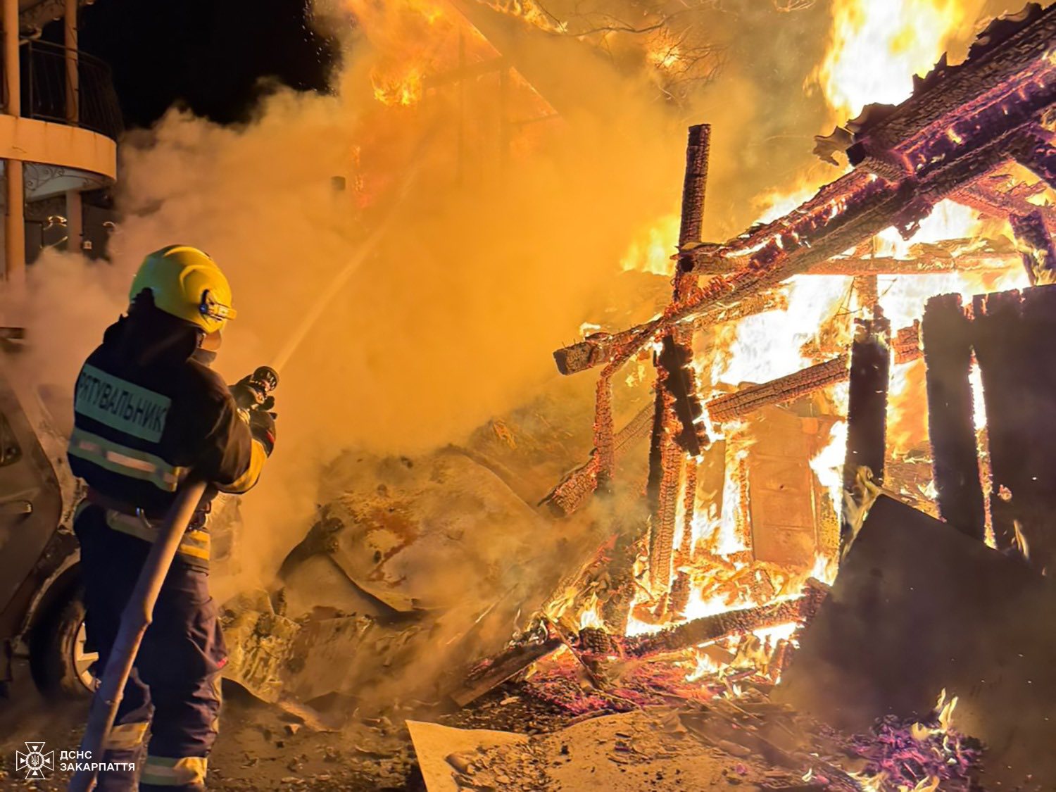 На момент прибуття ужгородських вогнеборців полум’я охопило дві надвірні споруди та легковий автомобіль Renault Duster. Пожежу на площі 77 кв. м локалізували за 25 хвилин, а о 02:32 — повністю ліквідували.