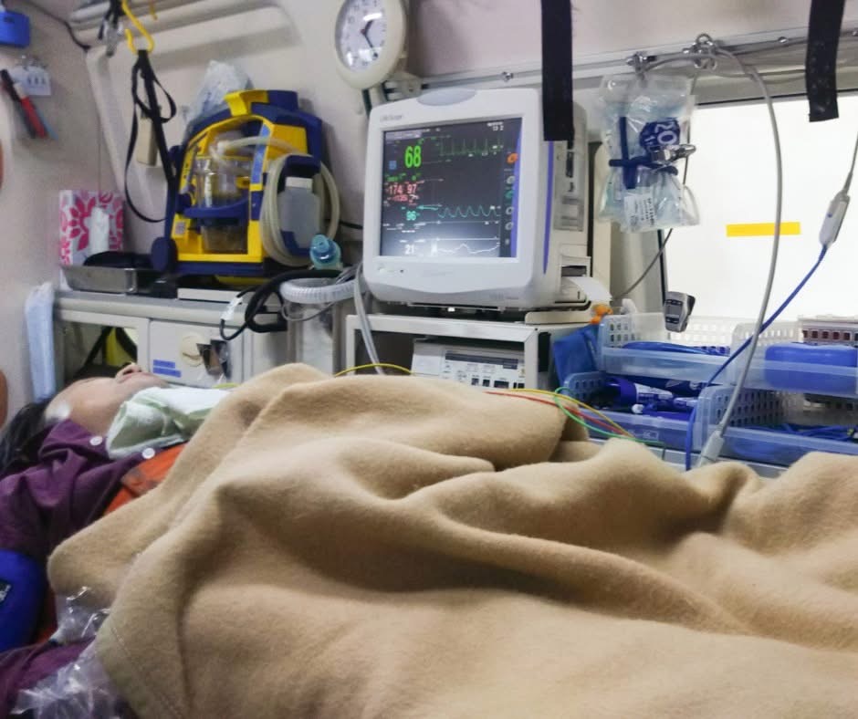 У дорозі пацієнтці забезпечили седацію, знеболення, кисневу підтримку та постійний моніторинг життєвих показників. Після прибуття до медичного закладу стан вдалося стабілізувати: сатурація підвищилася до 91%, артеріальний тиск нормалізувався.