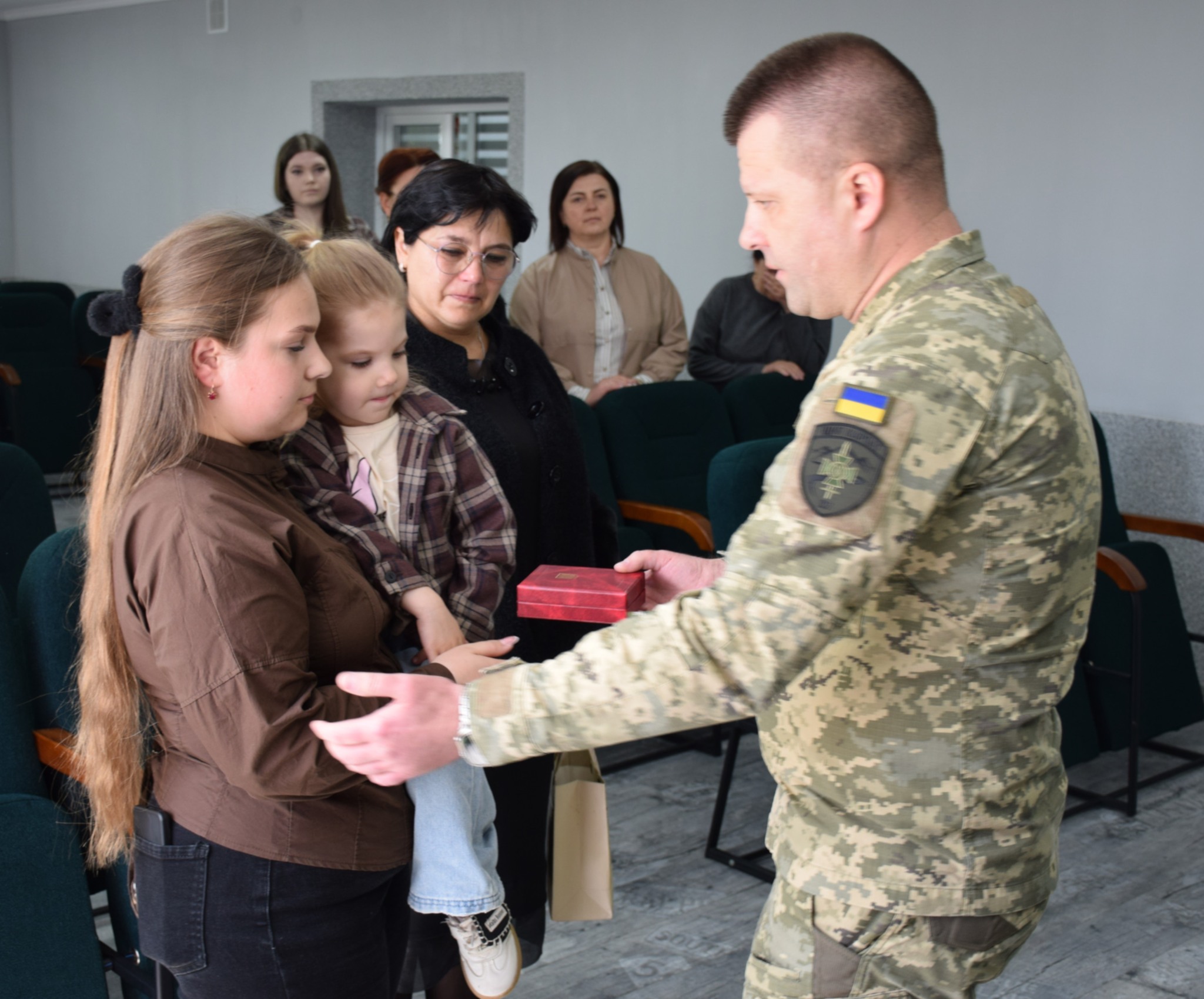 Державну нагороду матері, дружині та донечці загиблого воїна вручили заступник начальника Мукачівського прикордонного загону полковник Олександр Гладкий та голова Горондівської територіальної громади Іван Туряниця.